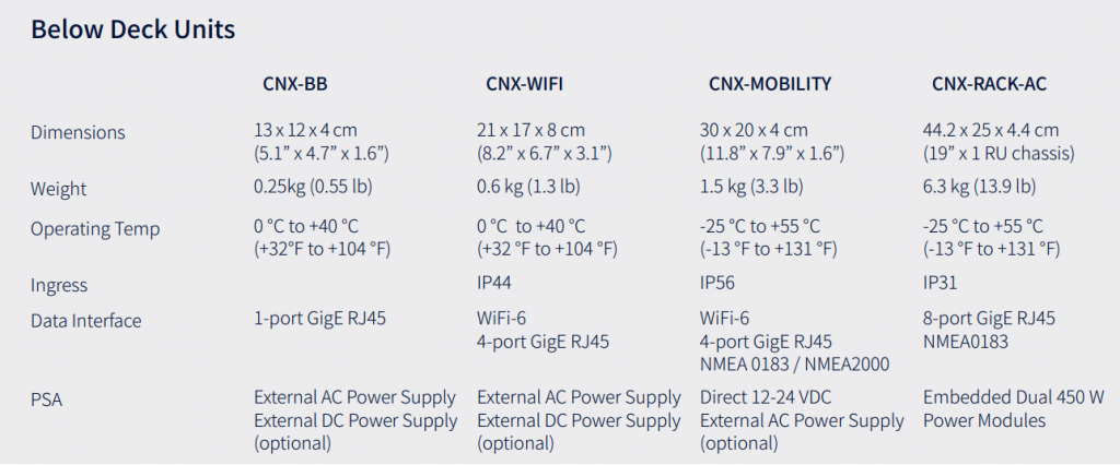 Les unités d’Échange de Réseau Client (CNX) d’Intellian sont un composant essentiel de l’installation du terminal utilisateur, fournissant à la fois l’alimentation et la connectivité des données au panneau plat, ainsi que la connectivité avec les équipements et réseaux clients. Une gamme de variantes de CNX est proposée pour des scénarios de déploiement maritime spécifiques.